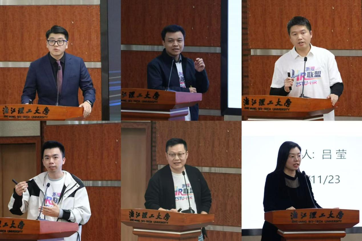 在专题报告环节,六位人力资源管理领域的杰出校友代表分享了前沿洞见与实践经验。杭州飞数万重科技有限公司创始人郝一霖(2011级)以“AI落地实践”为主题,通过“人力知识库+浙理HR场景+工作坊”的浙理HRready创新模式,系统阐述了HR落地的“数据+工具+组织ready”实施路径;仁奕企服(杭州)数智科技有限公司CEO魏孙贤(2002级)围绕“业务导向的人力资源管理思维”,深入探讨了动态组织管理系统中构建文化与财务体系的共生机制,并从行业认知、价值链理解、思维训练等维度提出产教融合建设性意见;迪安诊断集团人力资源中心总经理张何为(2003级)以“人机共生带来的组织转型”为题,构建了四层技能框架的AI人才培养体系,并分享了AI应用KPI设计、组织架构四支柱转型、数字人员工应用及AI治理标准等创新实践;灵鋆智能创始人陈灵军(2012级)聚焦“AI智能体搭建策略”,深刻阐释了AI Agent对企业效能变革的赋能价值,前瞻性展望了超级智能体的发展趋势;杭州西奥电梯有限公司西奥商学院&营销学院负责人夏熙(2004级)立足“数智化时代下人才发展的价值重构”,分享了人才发展的价值重构与业务同频的经验体会,提出了数智化时代下人才发展与业务增长曲线匹配的创新思路;晟泽咨询&九禄资本联合创始人吕莹(2002级)则以“AI时代的心性修炼”为主题,分享了在数智时代实现个人成长与职业突破的深刻体悟。这些报告充分展现了人力资源管理领域的前沿探索与创新实践,为产教融合发展提供了宝贵参考。