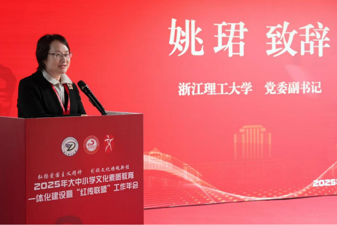 浙江理工大学牵头成立的大中小学红色文化一体化传承联盟工作案例荣获2025年全国大中小学思想政治教育一体化建设典型案例。会议总结了“红传联盟”过去一年的工作成效,为进一步凝聚奋进力量、谱写发展新篇,对表现突出的先进单位及先进个人予以表彰。