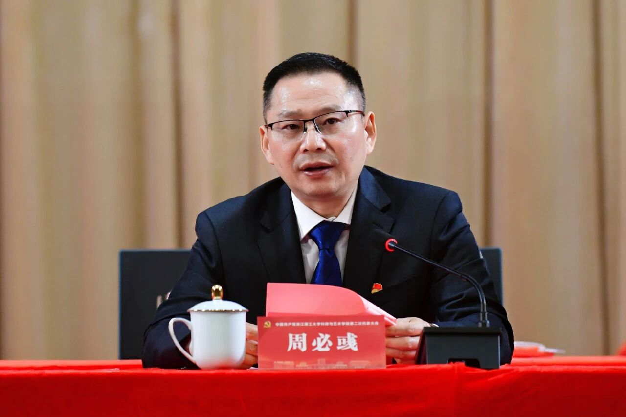 周必彧强调,本次党代会正值学院总结“十四五”成效、谋划“十五五”蓝图的重要节点,听取审议党委和纪委工作报告、选举产生新一届“两委”班子是大会的重要任务,对明确发展目标、凝聚共识力量具有重要意义。他希望各位代表牢记信任与重托,坚决按照党章和《中国共产党基层组织选举工作条例》,发扬民主,集思广益,圆满完成大会各项任务。同时他寄语学院新一届党委以此次党代会为新起点,紧扣立德树人根本任务,深化教育教学改革,强化办学特色优势,不断提升人才培养质量和综合办学实力,奋力开创学院事业发展新局面。