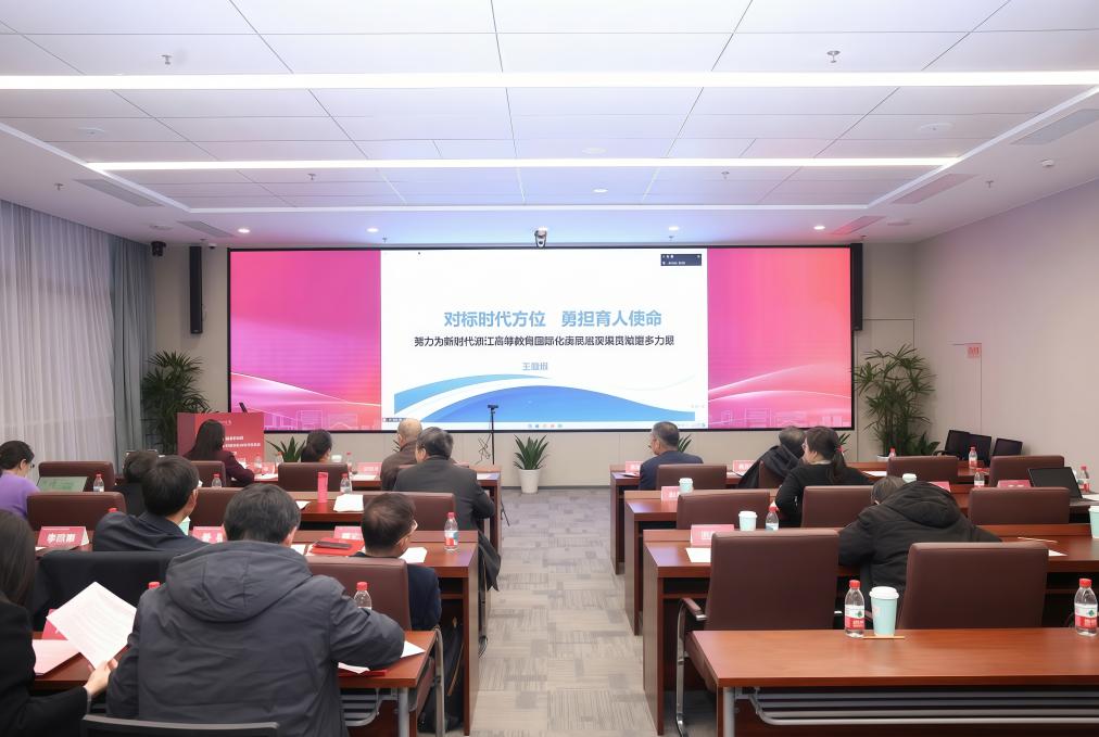 南京大学程爱民教授和省教育厅高等教育处二级调研员王国银教授应邀分别作《数智赋能、融合转型:开启来华留学工作高质量发展新篇章》《对标时代方位 勇担育人使命,努力为新时代浙江高等教育国际化高质量发展贡献更多力量》专题报告。