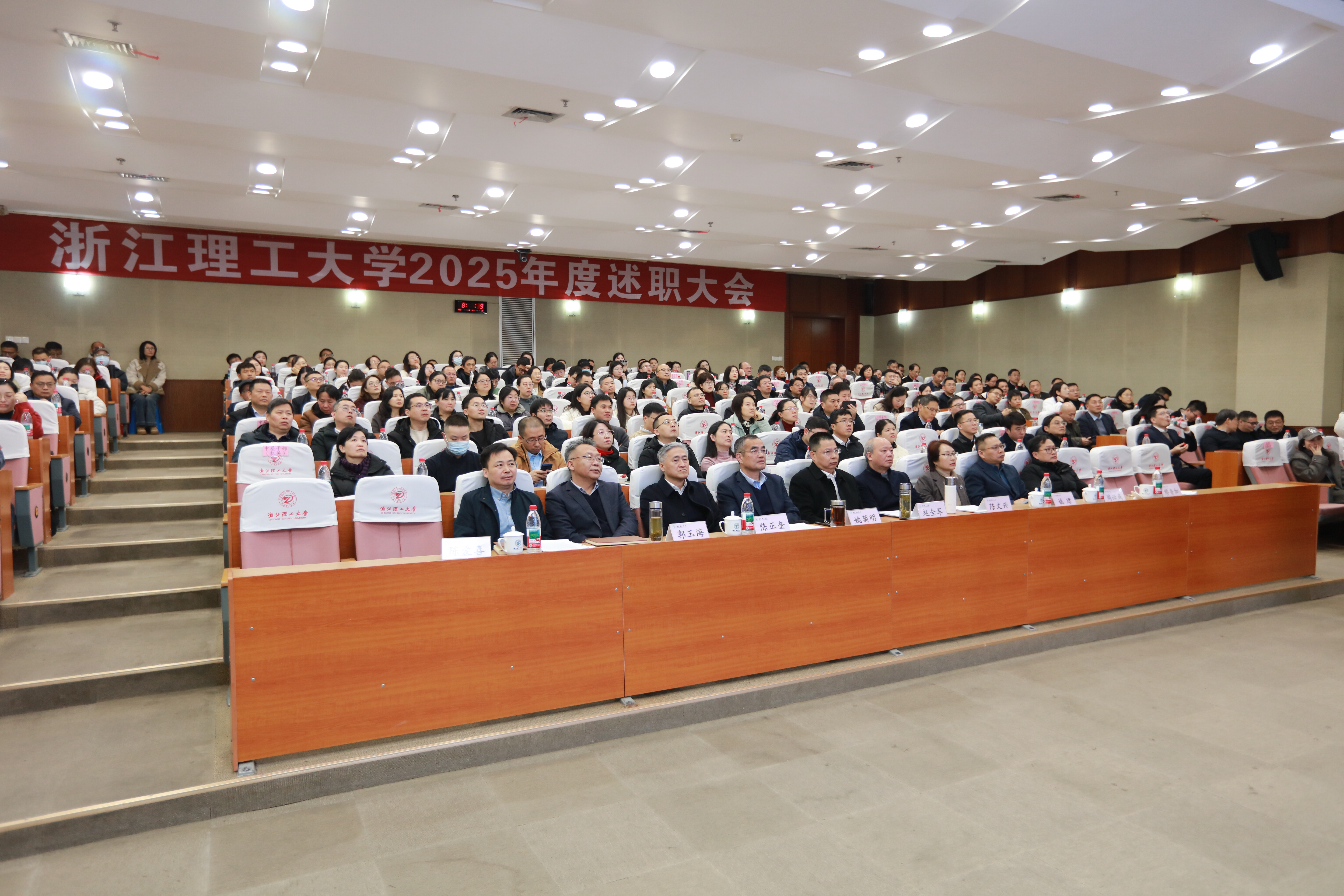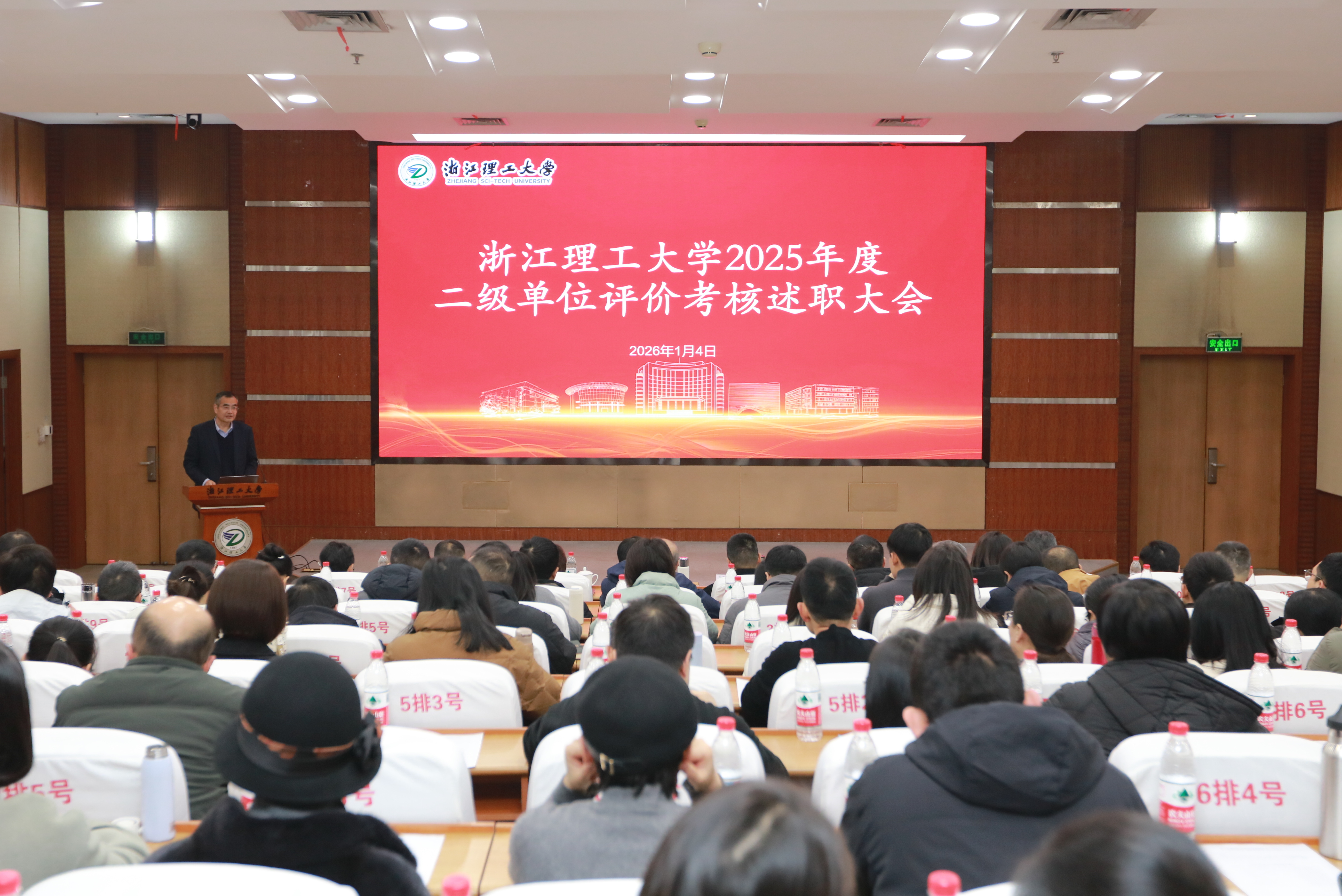 1月4日上午,学校2025年度二级单位评价考核述职大会在行政楼二楼报告厅举行。校领导班子成员出席会议,副校长姚菊明主持会议。