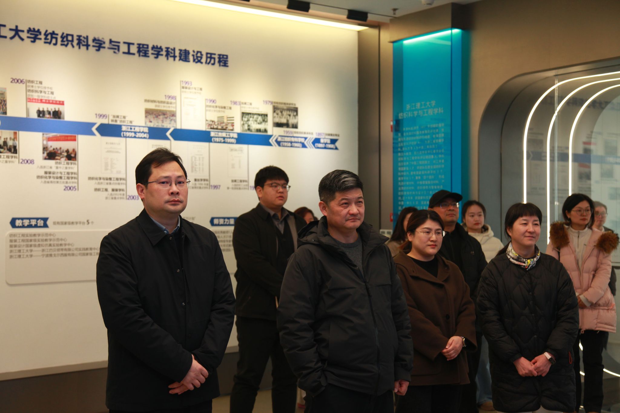 浙江大学、浙江工业大学、杭州电子科技大学等高校相关工作负责人出席会议。会前,来访人员一行参观了我校纺织科技创新馆。