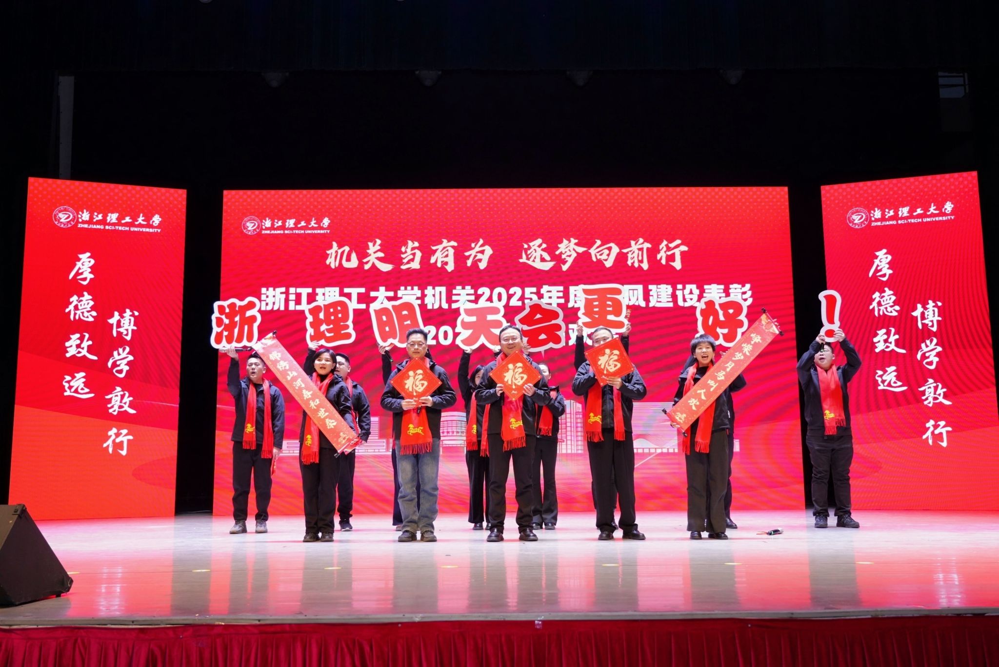此次机关年度作风建设表彰暨新年联欢会,既是对过去一年工作成果的集中检阅和肯定表彰,更是凝聚共识、鼓舞士气的动员大会。站在新的历史起点,全体机关人将以更加饱满的热情、更加务实的作风,策马扬鞭向一流、奋楫争先续华章,为学校加快建设特色鲜明的高水平大学,在新征程上续写更加辉煌的浙理工篇章!