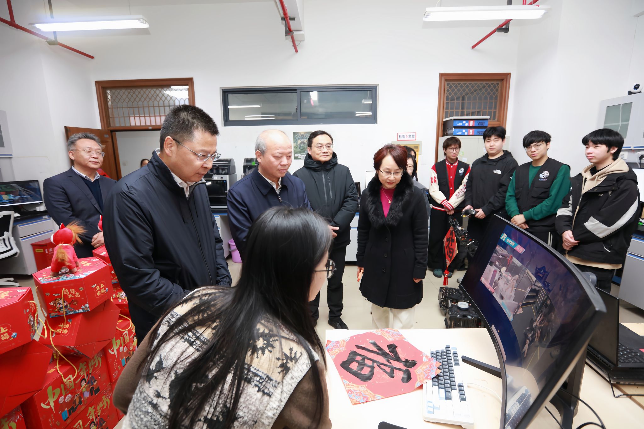 在下沙校区,赵全军、陈文兴一行看望了计算机科学与技术学院(人工智能学院)、机械工程学院的学生科研团队,亲切询问科研进展和备赛情况,勉励大家坚定信心、精诚协作,在科研攻关和竞赛实战中锤炼本领、争创佳绩。随后,校领导一行走访了校警驿站、桂花园食堂、高压配电房和学生公寓,认真听取了工作汇报,并与一线工作人员亲切交流,感谢他们的坚守与付出。