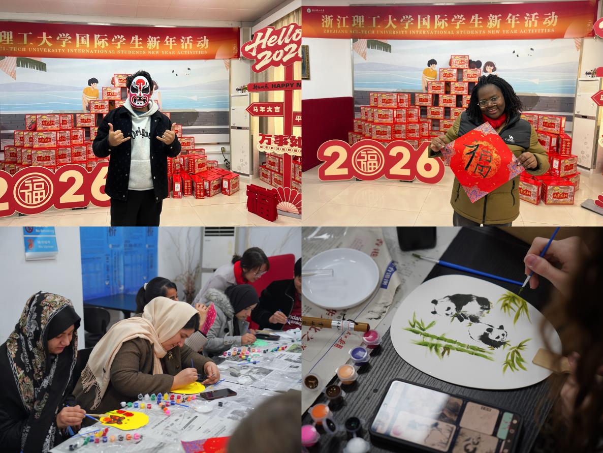 当天下午,留校国际学生们在宿舍楼汉语角参加了新春游园活动,体验写福字、画脸谱、扇面绘画等传统文化项目,感受浓浓中国年味,领略新春独特韵味。