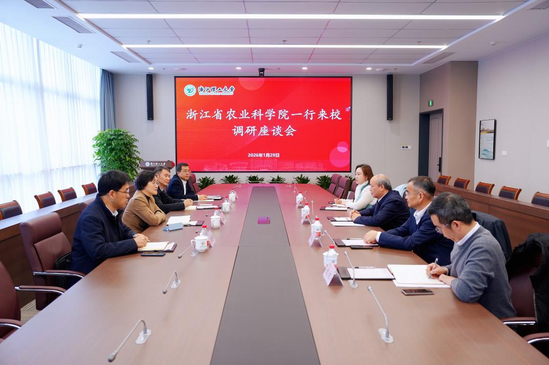 1月29日上午,浙江省农业科学院党委书记劳红武,党委委员、副院长吴宏宇一行来校调研交流。校长陈文兴主持座谈会并陪同调研,副校长姚菊明出席座谈会。