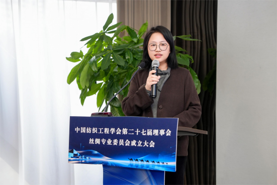 丝绸专业委员会秘书长张洪玲介绍了中国纺织工程学会的发展概况和核心业务,并就《中国纺织工程学会分支机构管理办法(试行)》进行解读。她强调,学会已设立中国纺织科技进步奖、青年科技奖等权威奖项激发创新动力,倡议委员推荐资深专家与青年才俊,纳入学会人才库,学会将通过人才输送通道,推荐参与国家重点项目、行业标准制定及国际学术交流等。最后,她表示,学会将全力支持专委会,开放核心资源,做专委会坚强后盾。