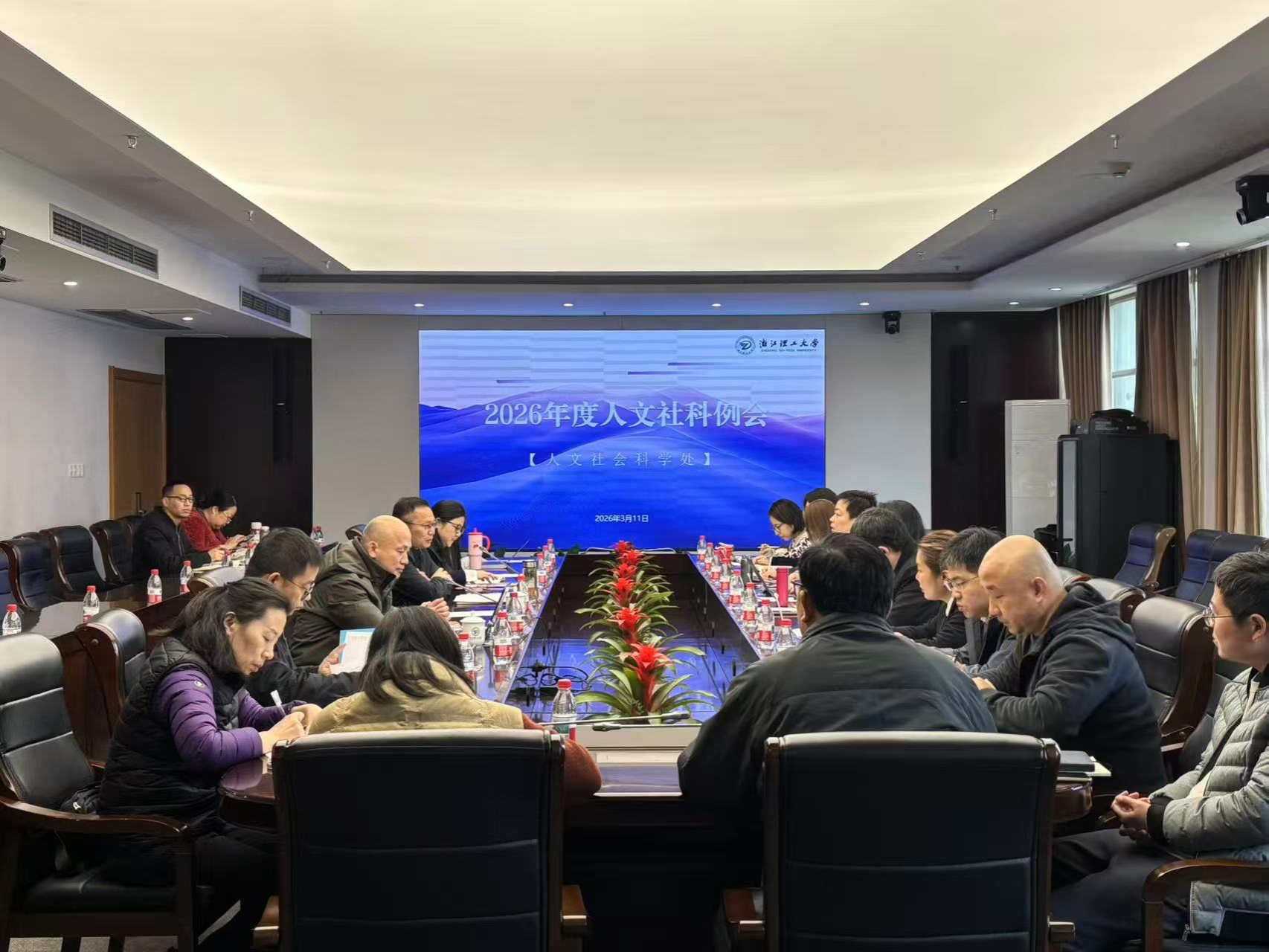 随后各学院对2026年度人文社科工作设想与推进计划进行简要汇报,各学院结合自身学科特色,分别从高级别项目申报、艺工交叉研究、智库基地转型、青年人才培育、学术团队打造等方面分享工作思路。