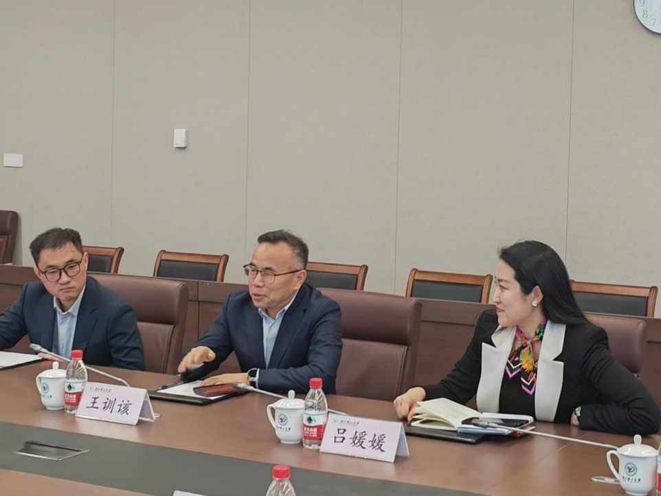王训该代表学校对Hodgson教授一行的到访表示热烈欢迎,并简要介绍了我校在纺织科技创新领域的学科特色与研究成果。国际处负责人就学校国际交流总体情况作了介绍。来访期间,Peter Hodgson教授一行还参观了尚+纺织科技创新馆。