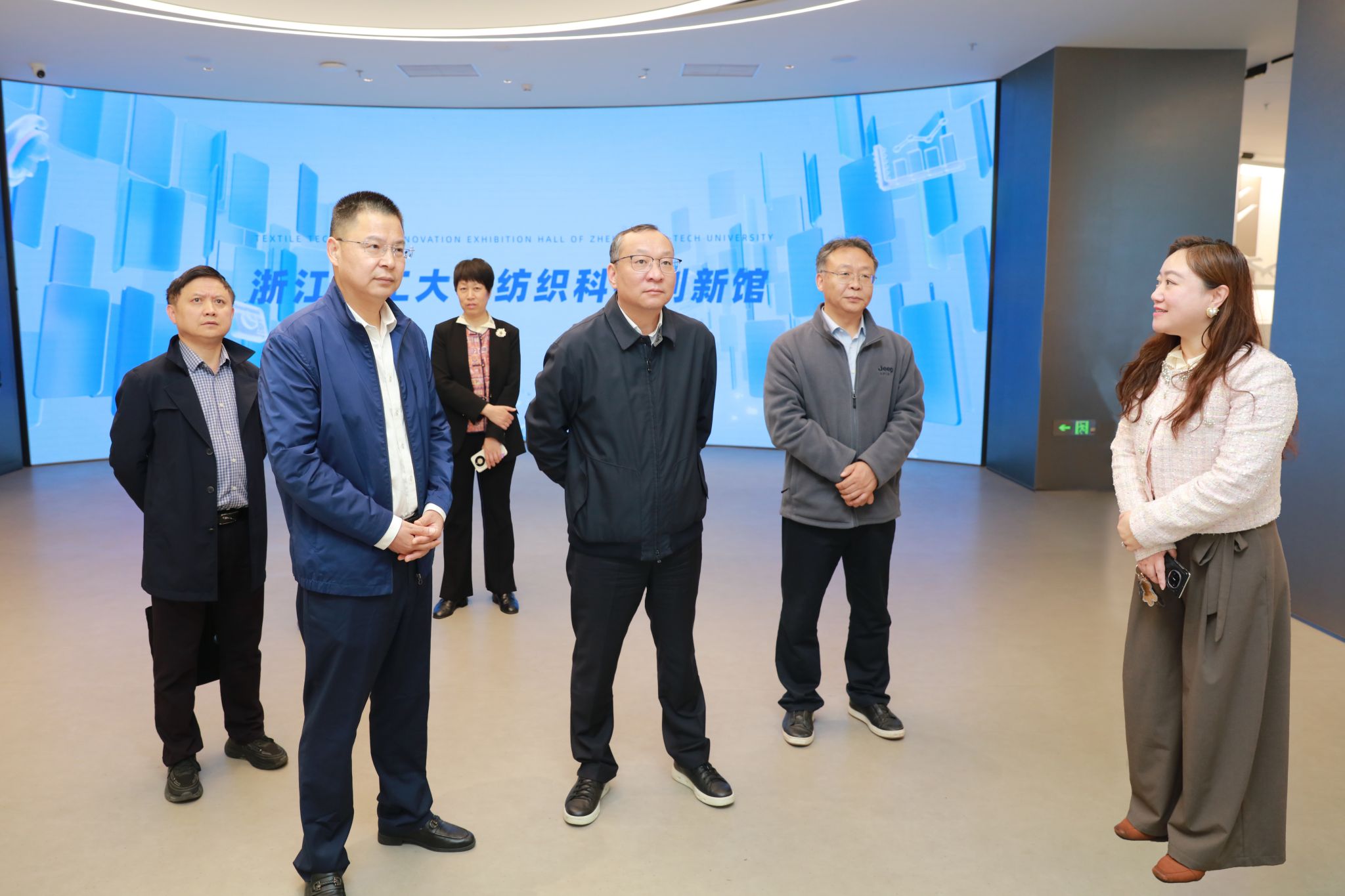 会前,沈敏一行参观了学校纺织科技创新馆,了解学校在现代纺织领域的前沿成果与产业创新实践,赵全军、郭玉海陪同参观。
