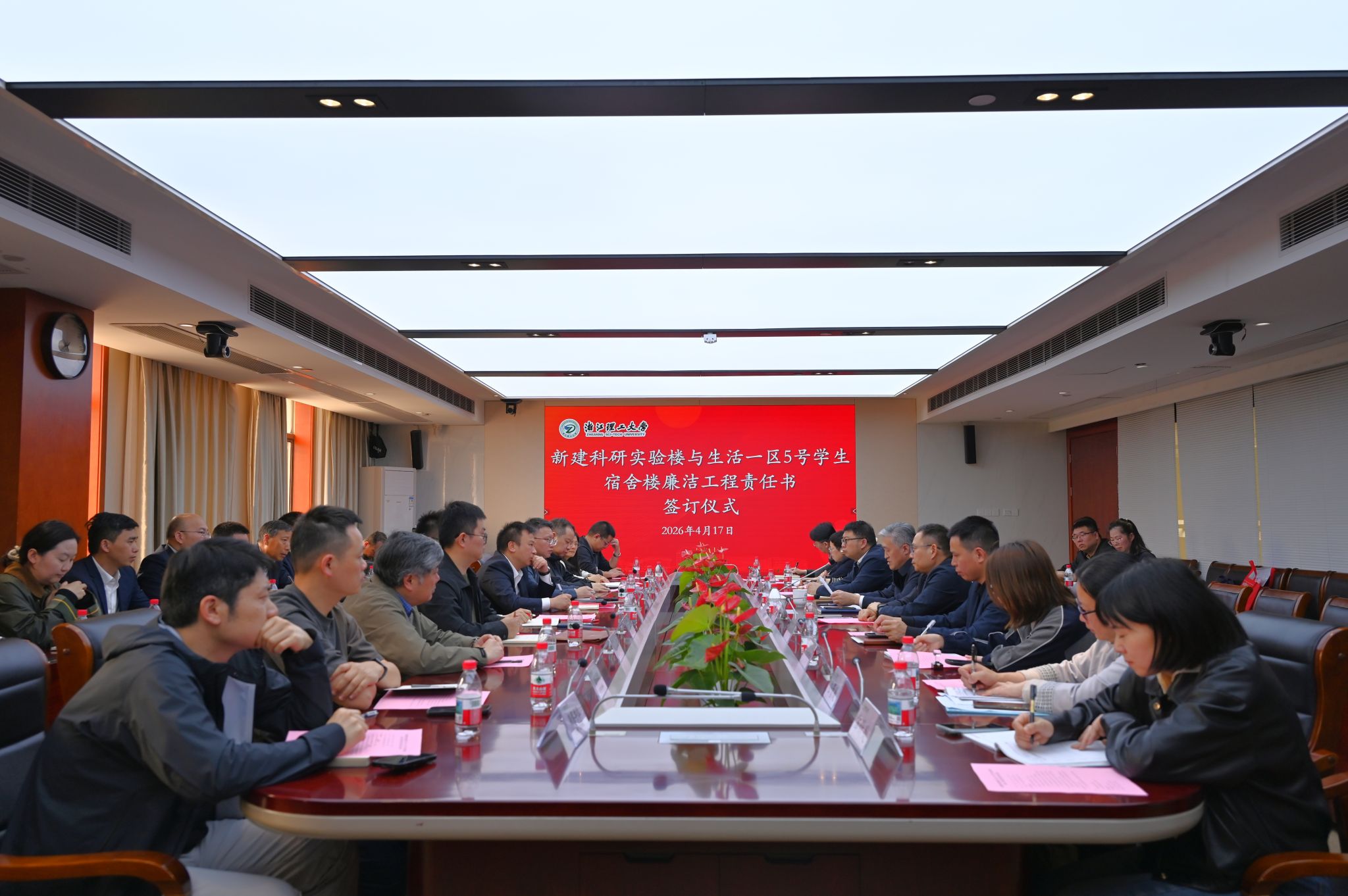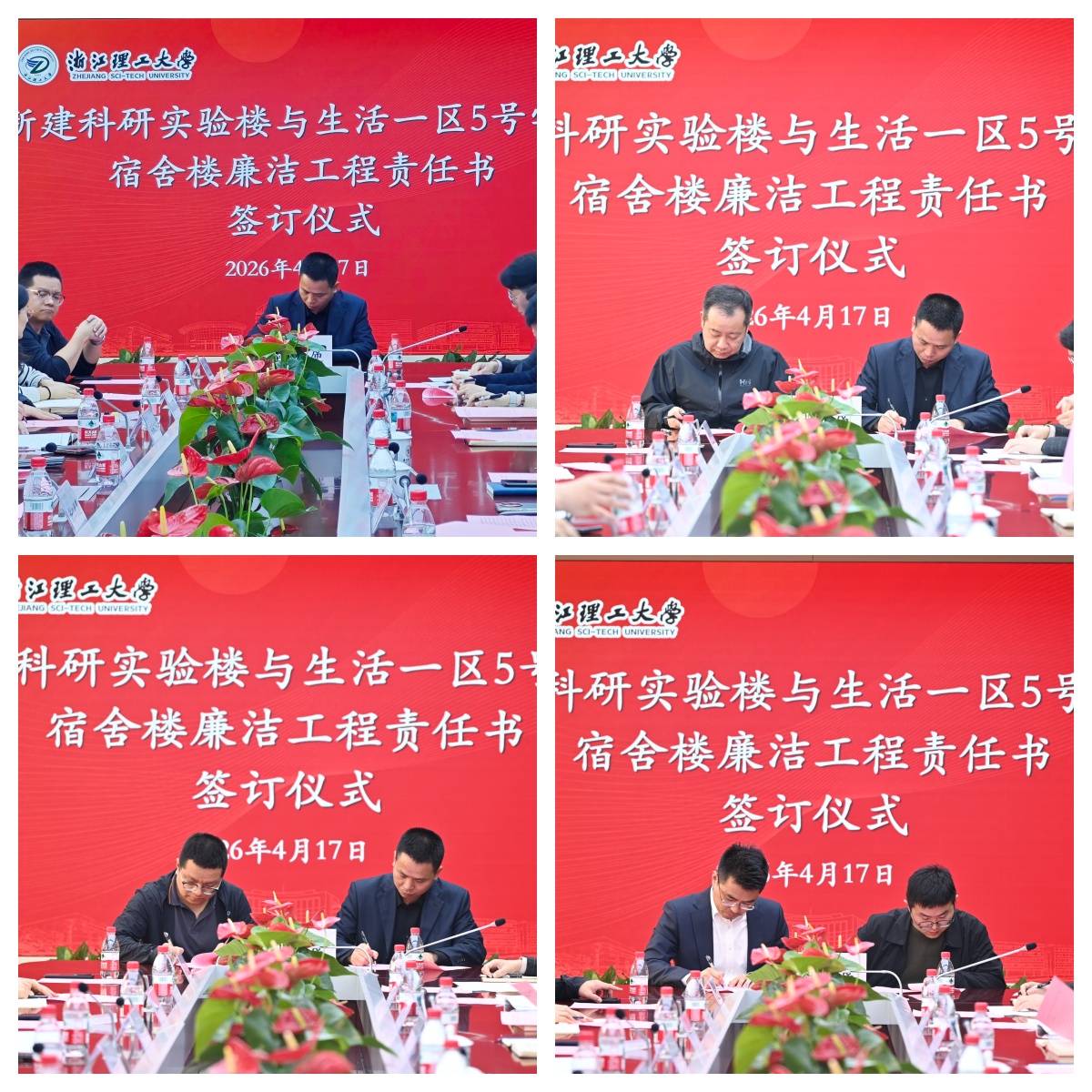 4月17日上午,浙江理工大学举行新建科研实验楼与生活一区5号学生宿舍楼廉洁工程责任书签订仪式。校纪委书记陈正奎、副校长周必彧出席仪式。