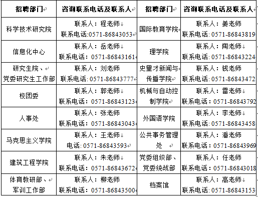 如需咨询其他事宜,考生本人可于11月20日16:00前致电应聘部门。其他具体招聘环节和工作要求按2017年9月12日《浙江理工大学公开招聘人员(非教学岗位)公告》进行。
