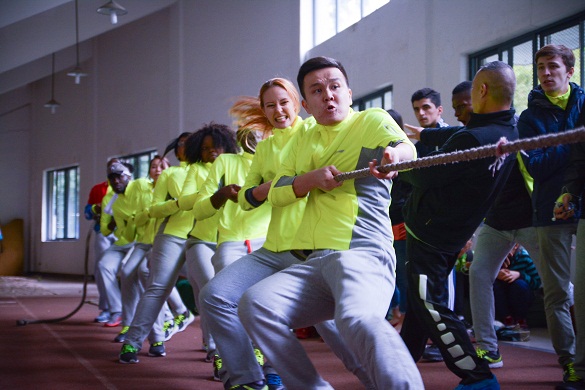 入场式结束后,篮球比赛、60米迎面接力赛开始。天公不作美,倾盆大雨让两场比赛变得更加紧张激烈,我校运动员最终取得篮球定点投篮第四名的好成绩。接着是跳大绳比赛,全体师生在室内体育馆内加紧练习,进一步培养合作默契。比赛偶有小插曲,但是我们的队员们齐心协力坚持到最后一秒钟,最终获得了第六名的好成绩。最后,颇具中国特色的拔河比赛开始。学生们意气风发,兴致高昂,再一次掀起运动会赛场上的一轮高潮,让留学生们充分体验和体会了一把拔河运动腰部力量的爆发锻炼与集体协作的成就感。队员们士气高昂,越战越勇,获得了第五名的好成绩。