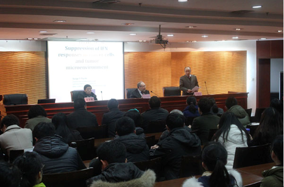 2月下旬,宾夕法尼亚大学Serge Y. Fuchs教授受新元医学与生物技术研究所所长刘新垣院士邀请来访,并在学校1号楼1楼报告厅为师生们做了题为“Suppression of IFN responses in cancer cells and tumor microenvironment”的学术报告。报告由刘新垣院士主持。