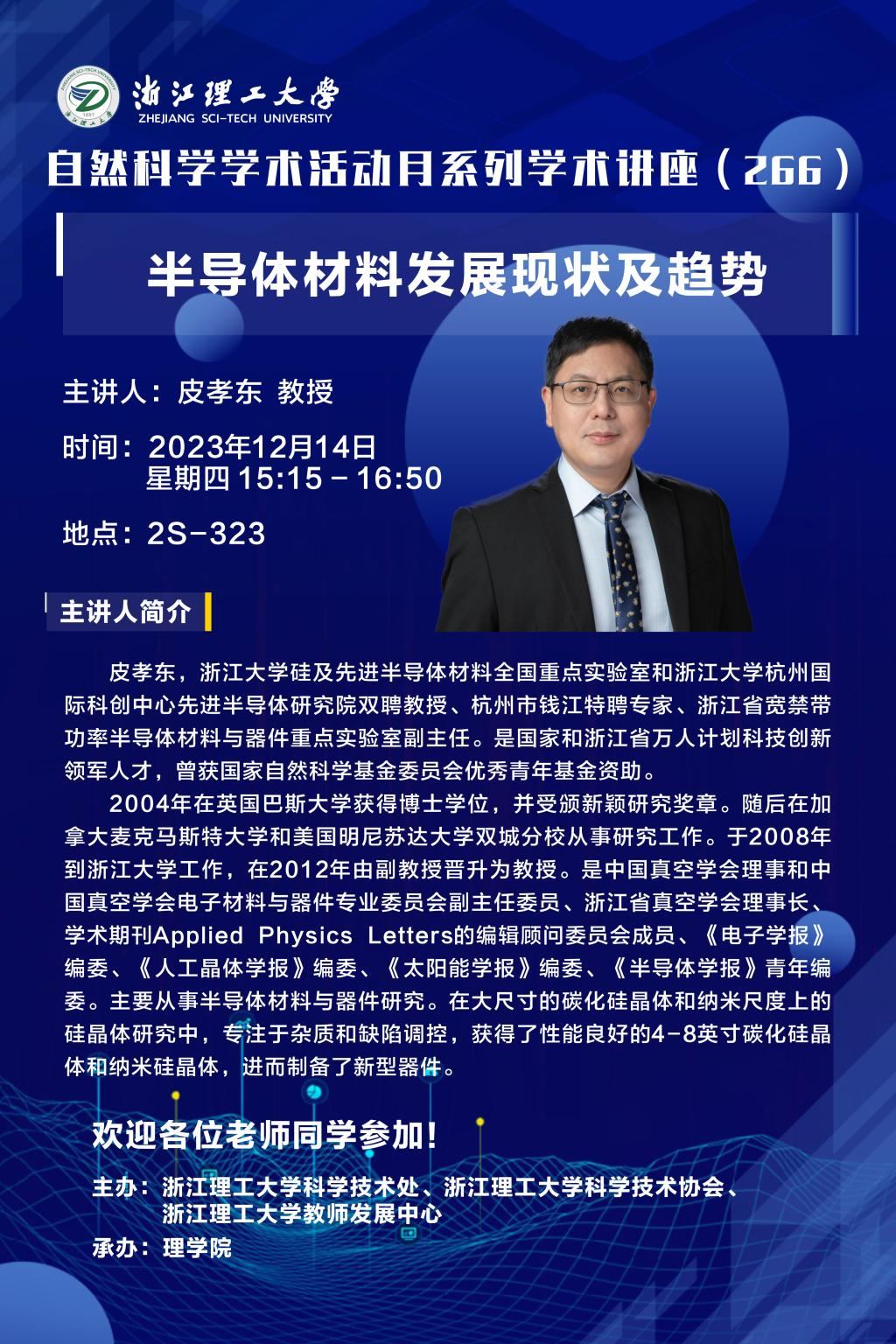 皮孝东,浙江大学硅及先进半导体材料全国重点实验室和浙江大学杭州国际科创中心先进半导体研究院双聘教授、杭州市钱江特聘专家、浙江省宽禁带功率半导体材料与器件重点实验室副主任。是国家和浙江省万人计划科技创新领军人才,曾获国家自然科学基金委员会优秀青年基金资助。