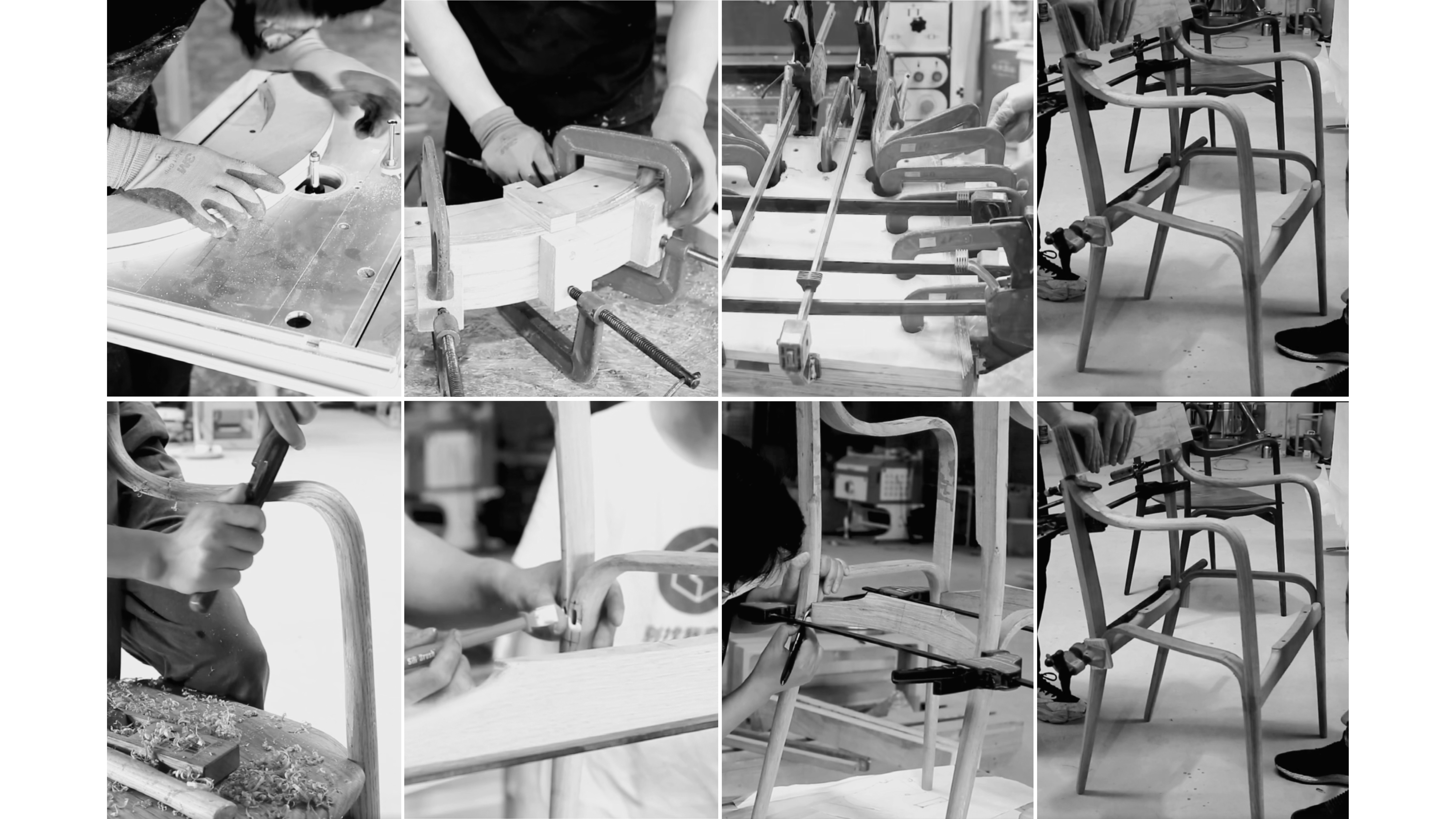 《Smile Chair》以靠背模拟上扬嘴角的弧度得名,自带治愈视觉张力。其扶手与前后腿的造型暗藏巧思,仿若原木劈开后自然生长的形态,将“万物生长”的生命力融入设计,传递出与自然共生的设计哲思。扶手与靠背的线条细腻如丝绸,兼具轻盈柔顺的质感与饱满精致的形态,于光影间营造出独特的阴翳美学意境。作品的核心亮点是将书法艺术的灵动曲线与座椅功能部件深度融合,既具备雕塑级的造型美感,又承载深厚文化精神,拥有掌控空间氛围的力量。为实现丰富的空间曲线,其采用先进蒸汽弯压曲木技术,以极简用料最大化呈现实木的天然高贵质感,同时充分释放木材韧性。每一处细节均经严苛匠心打磨,在传递工艺温度的同时,唤醒使用者的惜物之情,成为兼顾实用价值与情感价值的设计佳作。