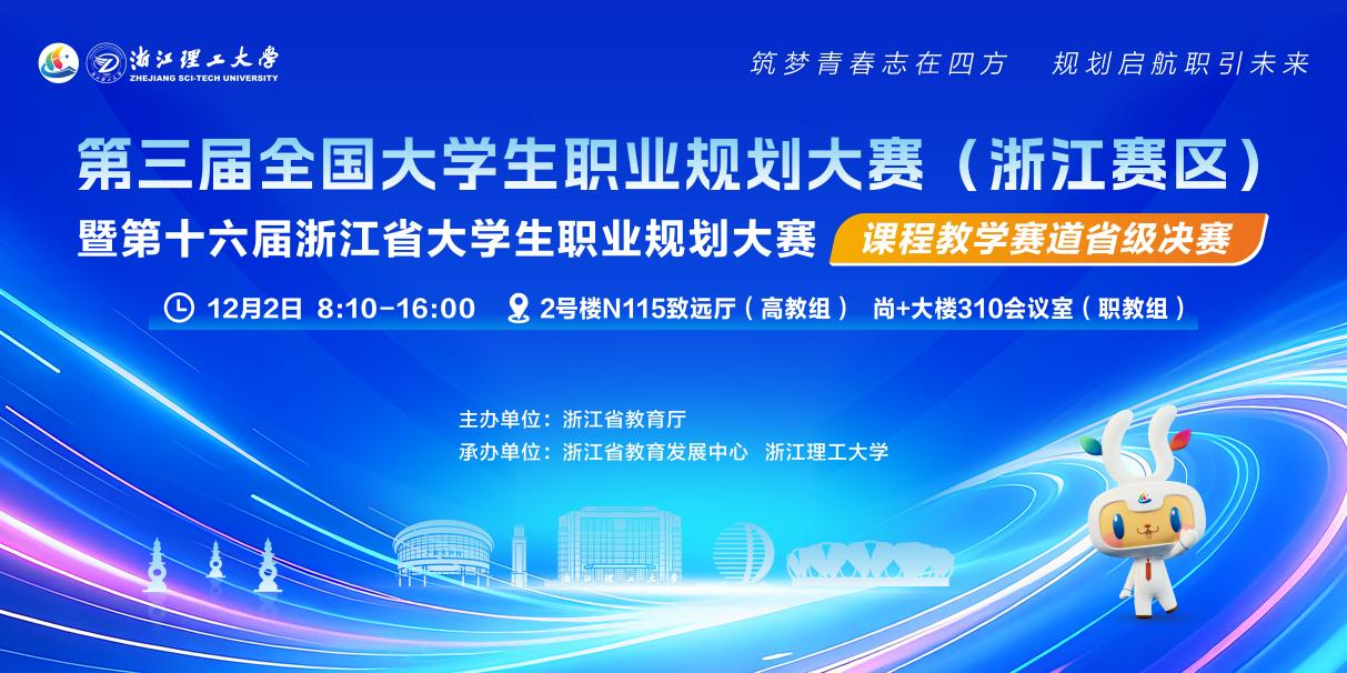 12月2日,第三届全国大学生职业规划大赛(浙江赛区)暨第十六届浙江省大学生职业规划大赛课程教学赛道省级决赛在浙江理工大学下沙校区举行。本次大赛由浙江省教育厅主办,浙江省教育发展中心和浙江理工大学承办。省教育厅高教处三级调研员周武汉,省教育发展中心党委书记、主任汪国辉,学生就业部主任朱伟君以及校党委副书记缪鲁加莅临现场指导工作。